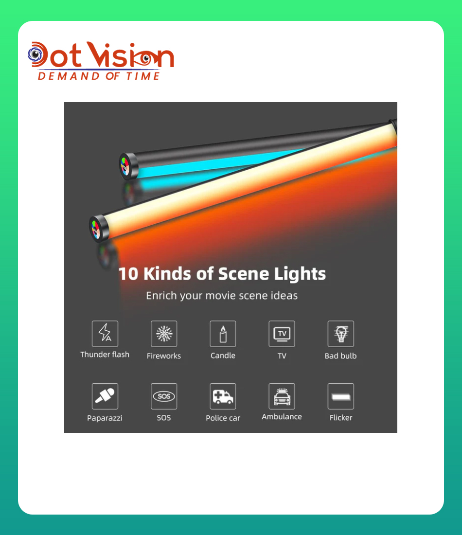 Introducing the Tolifoledlight ST-10RGB LED Light Wand, available in Bangladesh at Dotvisionbd. This lightweight and versatile LED RGB light stick is perfect for photographers, videographers, and content creators who need a portable and customizable lighting solution. At 21.65 inches in length, this handheld wand is designed for flexibility, allowing you to create the perfect lighting setup wherever you are.